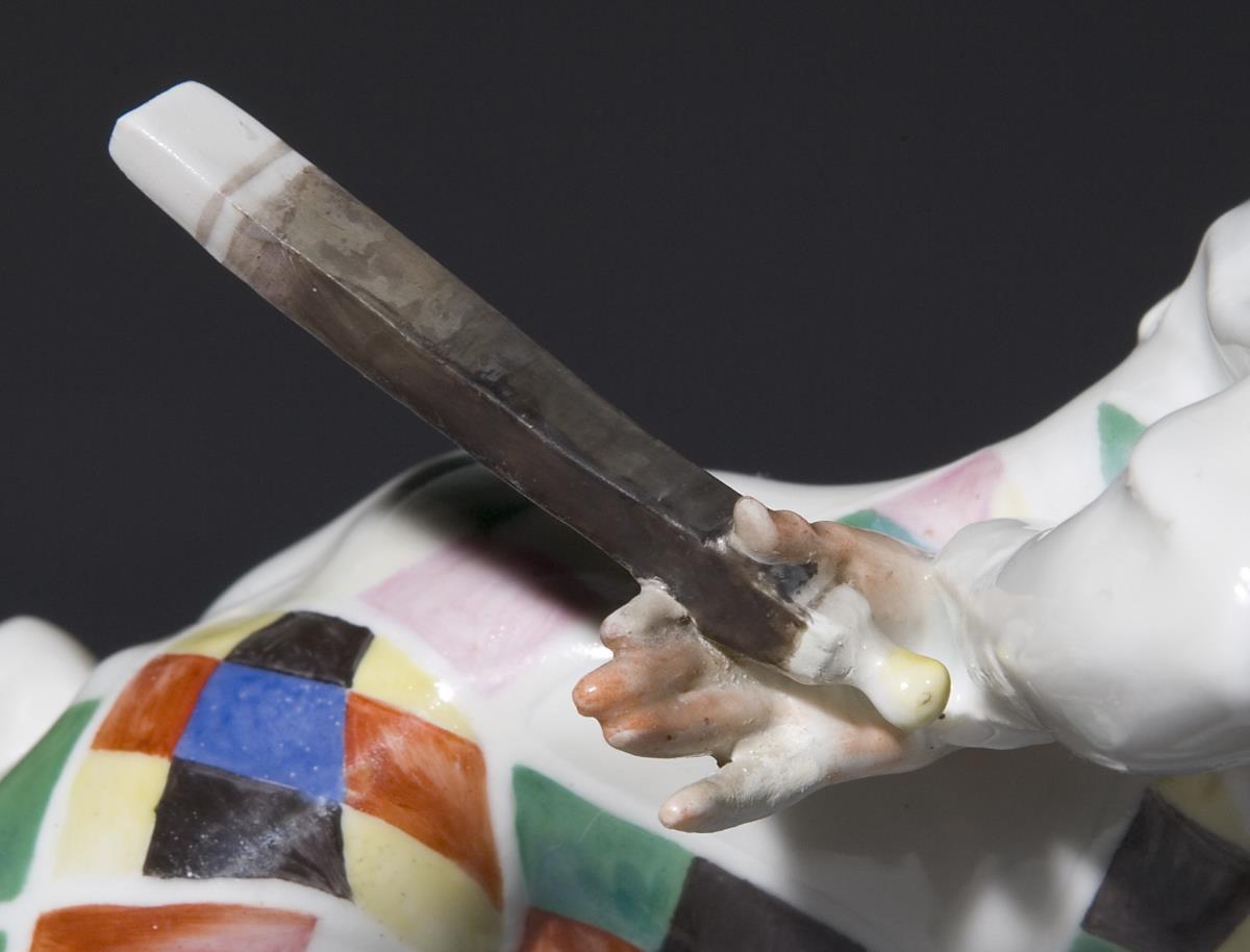 Modell von Paul Scheurich 1919. Farbig bemalt. Künstler-Signet, Pressmarken, Schwertermarke. Eine Hand, Stab restauriert, Sockelrand minimal bestoßen.