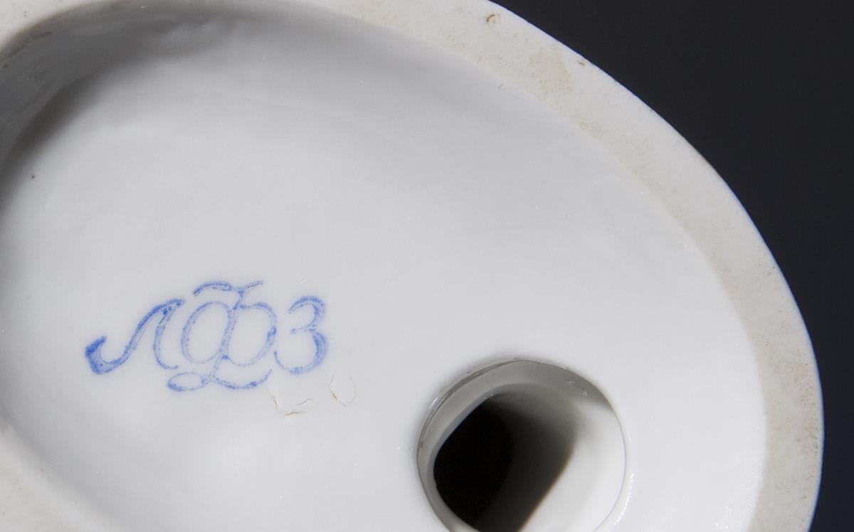 Farbig bemalt, gold staffiert. Kyrillische blaue Bodenmarke.