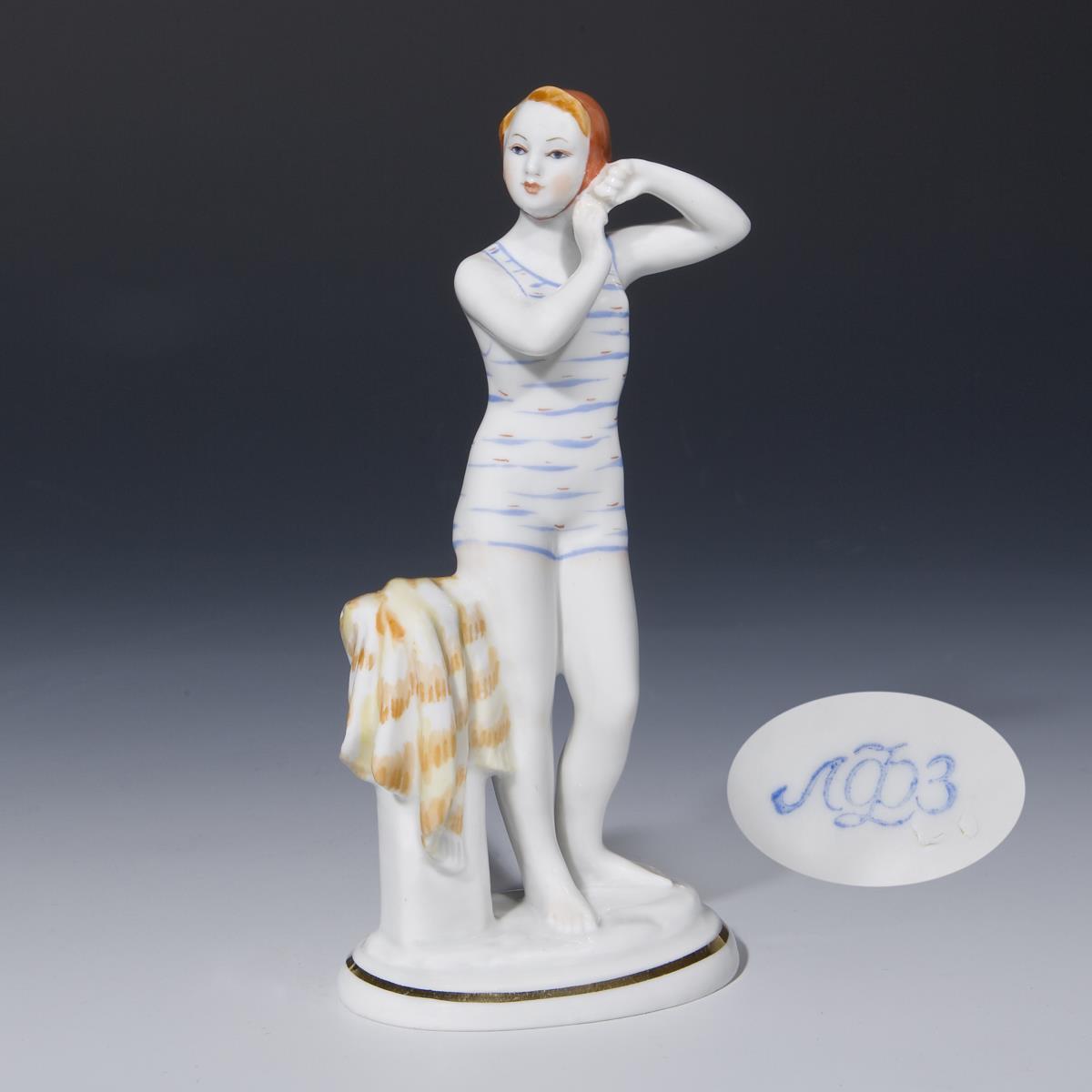 Russische Figur: Schwimmerin. Lomonossow Porzellanmanufaktur St. Petersburg.