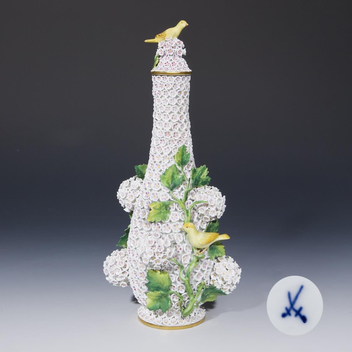 Schneeballen-Vase mit drei Vögeln. Meissen.
