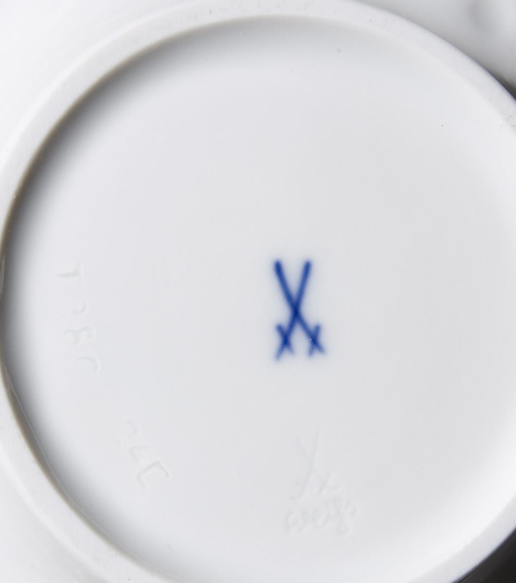 Modell von Ludwig Zepner 1965-1966. Reliefiertes Weißporzellan. Pressmarken, Schwertermarken.