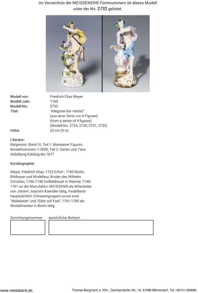 Meyer, 1746-1748 Hofbildhauer in Weimar. Ab 1748 Modelleur in Meissen. 1761-1785 Modellmeister in Berlin. * Partnerauktion Bergmann.