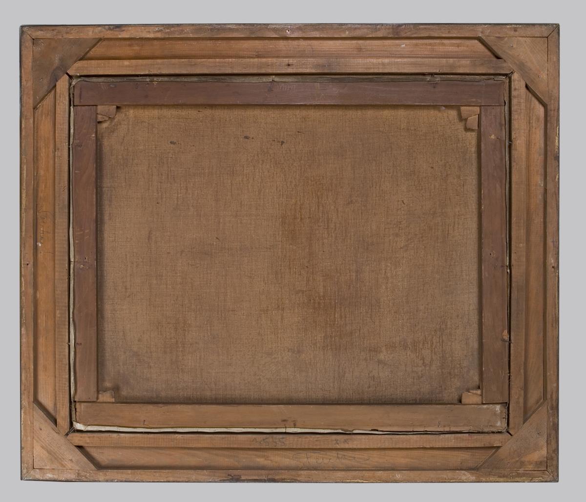 Originaler Keilrahmen, originaler Stuckrahmen. Rahmen partiell defekt.