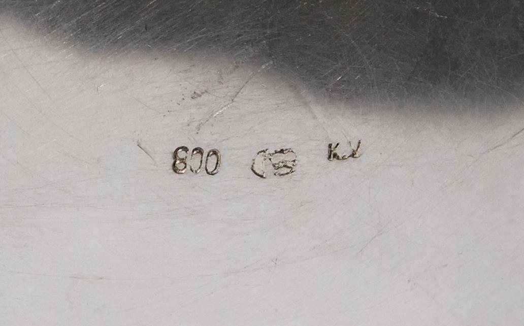 800er Silber, Tablett 835er Silber. Höhe: 5-9 cm, Breite: 24 cm. 552 Gramm.