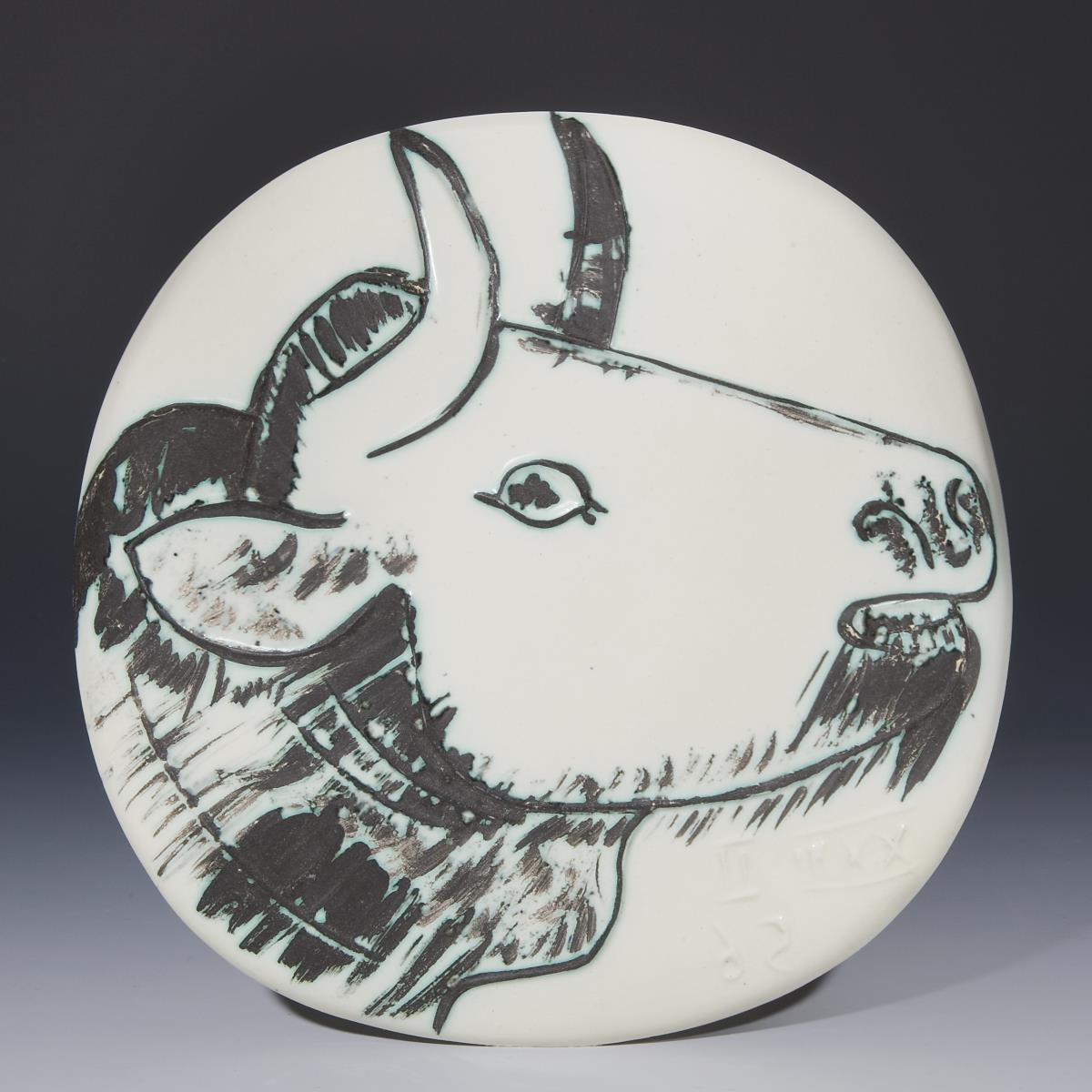 Keramik 1956 aus einer Auflage von 450 Exemplaren. Reliefiert, glasiert, bemalt. Pressmarke: Empreinte Originale de Picasso, Madoura plein feu.