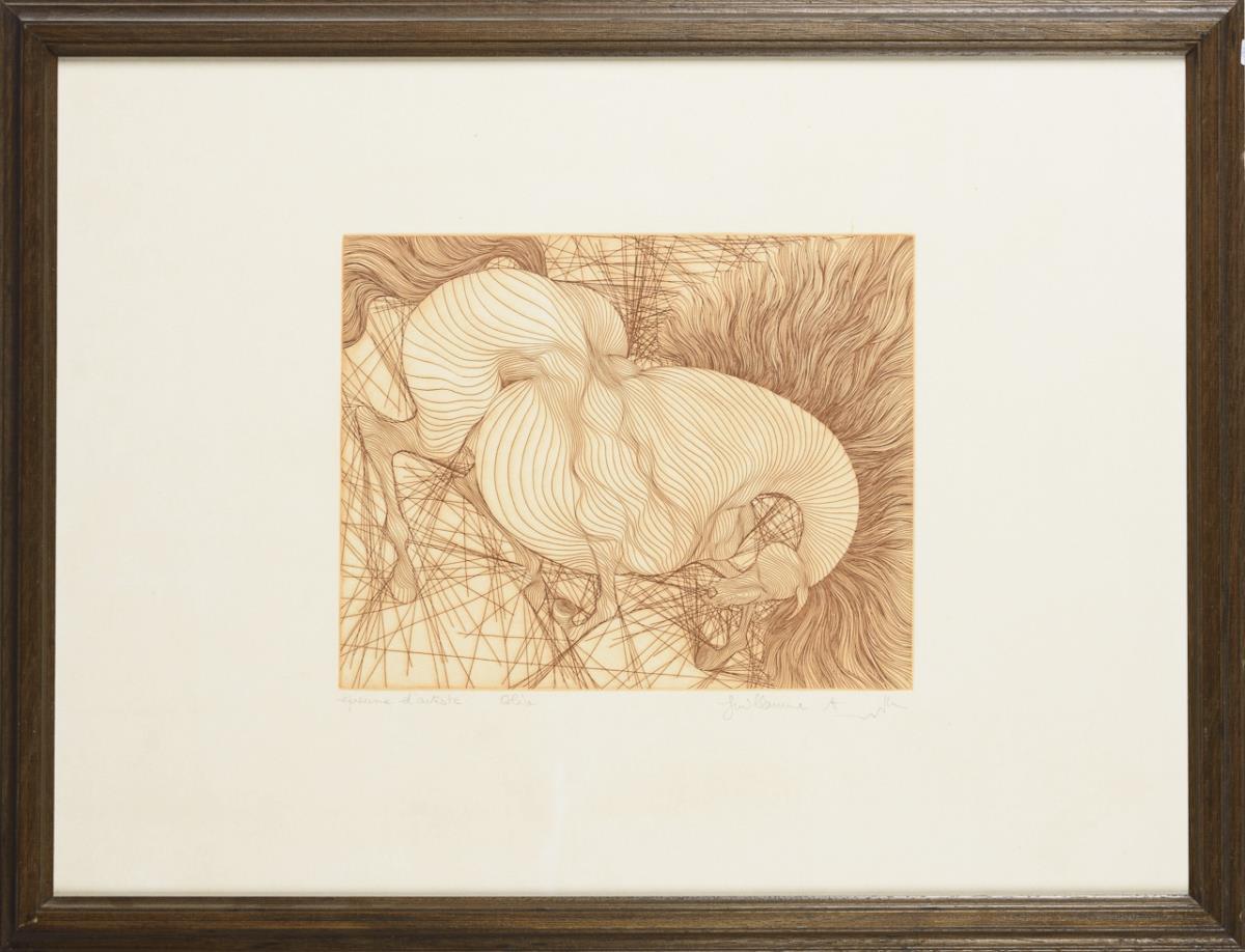 Radierung in Sepia. Bleistiftsignatur, Prägestempel "Spectrum Press". Künstlerexemplar "épreuve d'artiste".