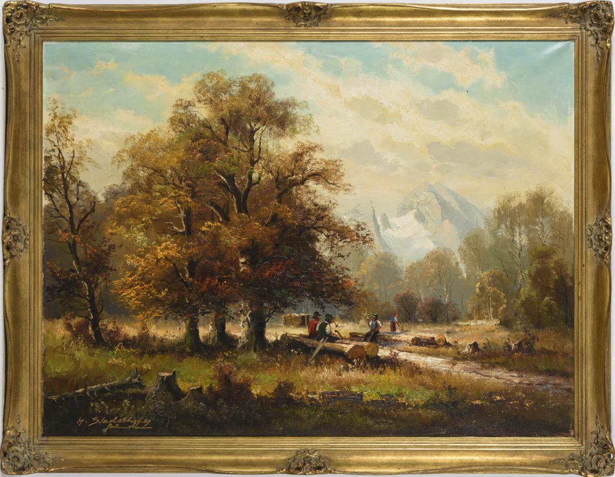 Holzarbeiter im Alpenland