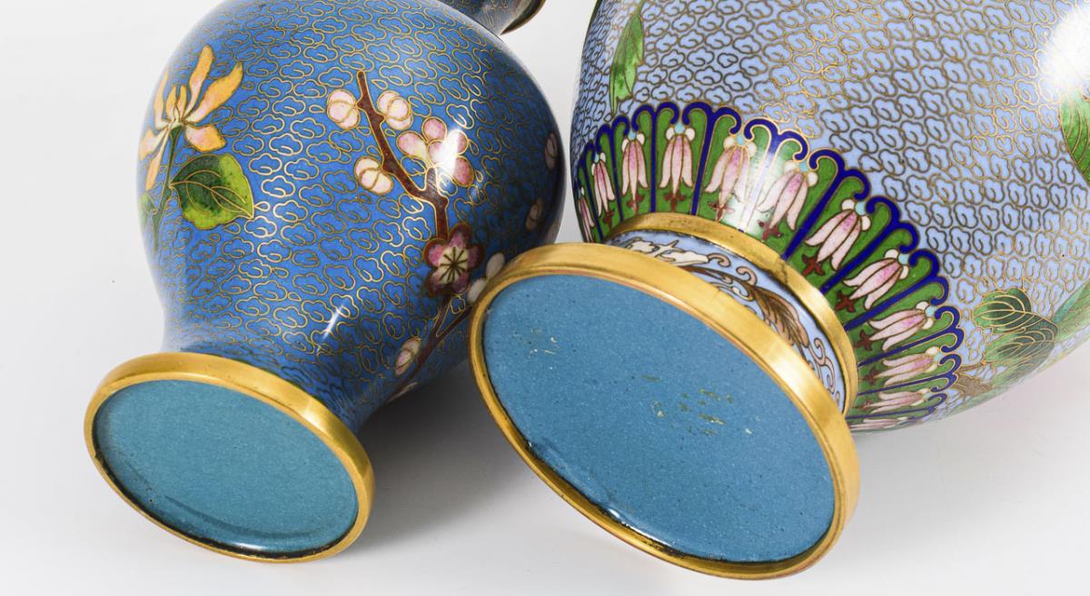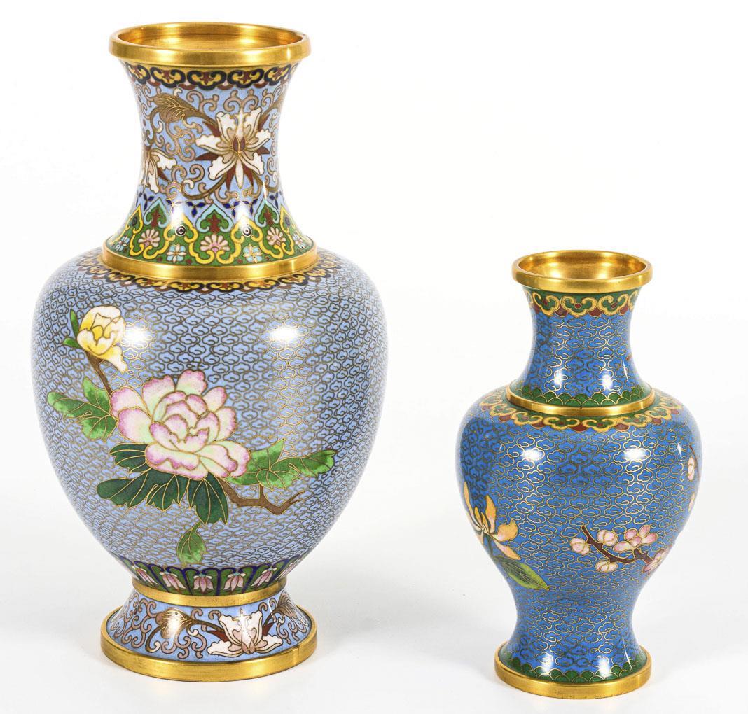 Sie befinden sich hier: Startseite Kategorien Außereuropäische Kunst 2 hellblaue Cloisonnévasen