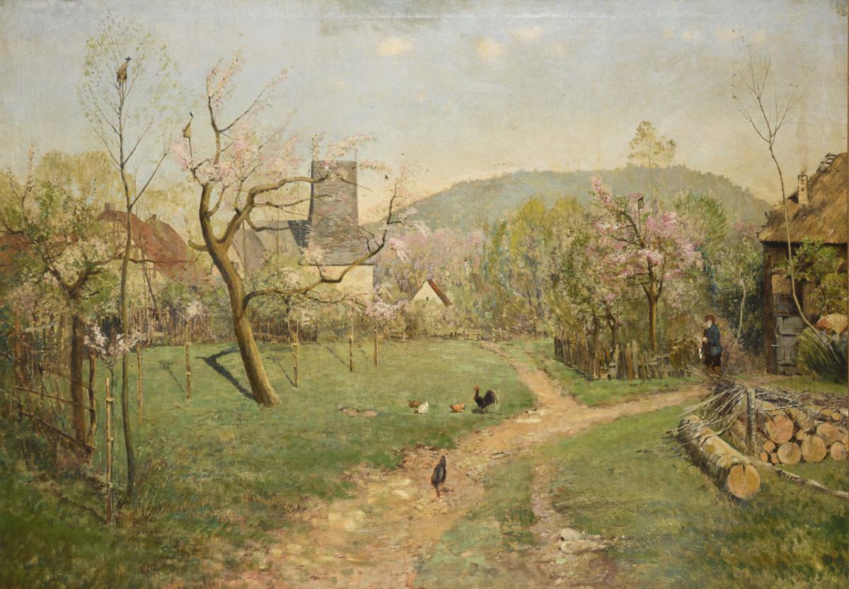 Weimarer Maler: Blühende Obstbäume am Dorfrand