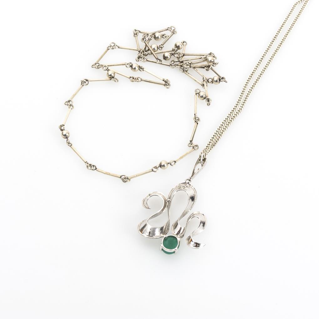 2 Silberketten, 1 Anhänger mit Grünachat.