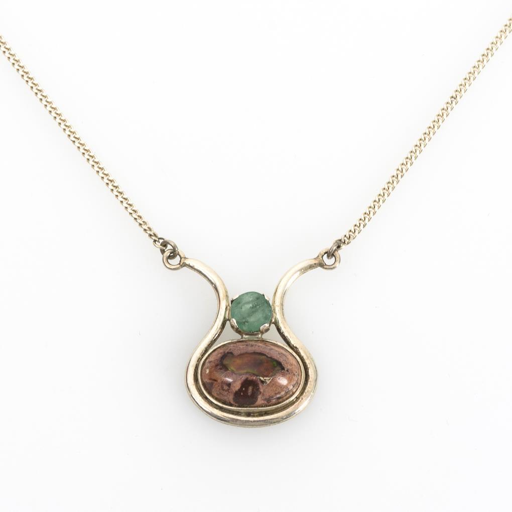 Sie befinden sich hier: Startseite Kategorien Schmuck Collier mit Boulderopal und Smaragd