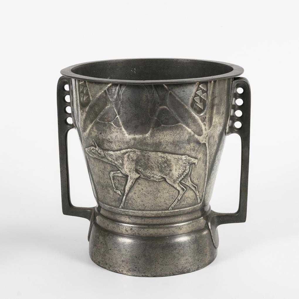 Jugendstil-Sektkühler und Tischgefäß. Kayserzinn.