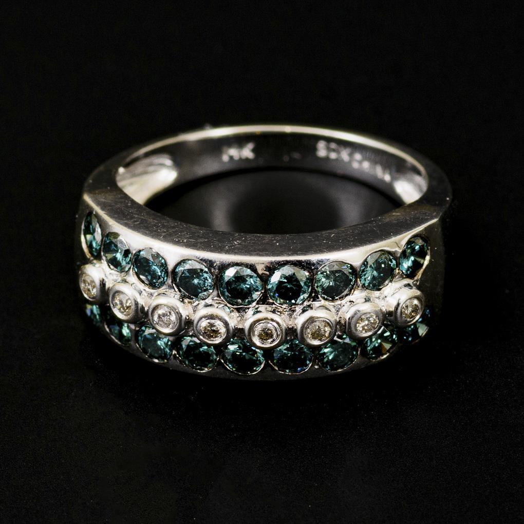Ring mit grünen und weißen Brillanten.