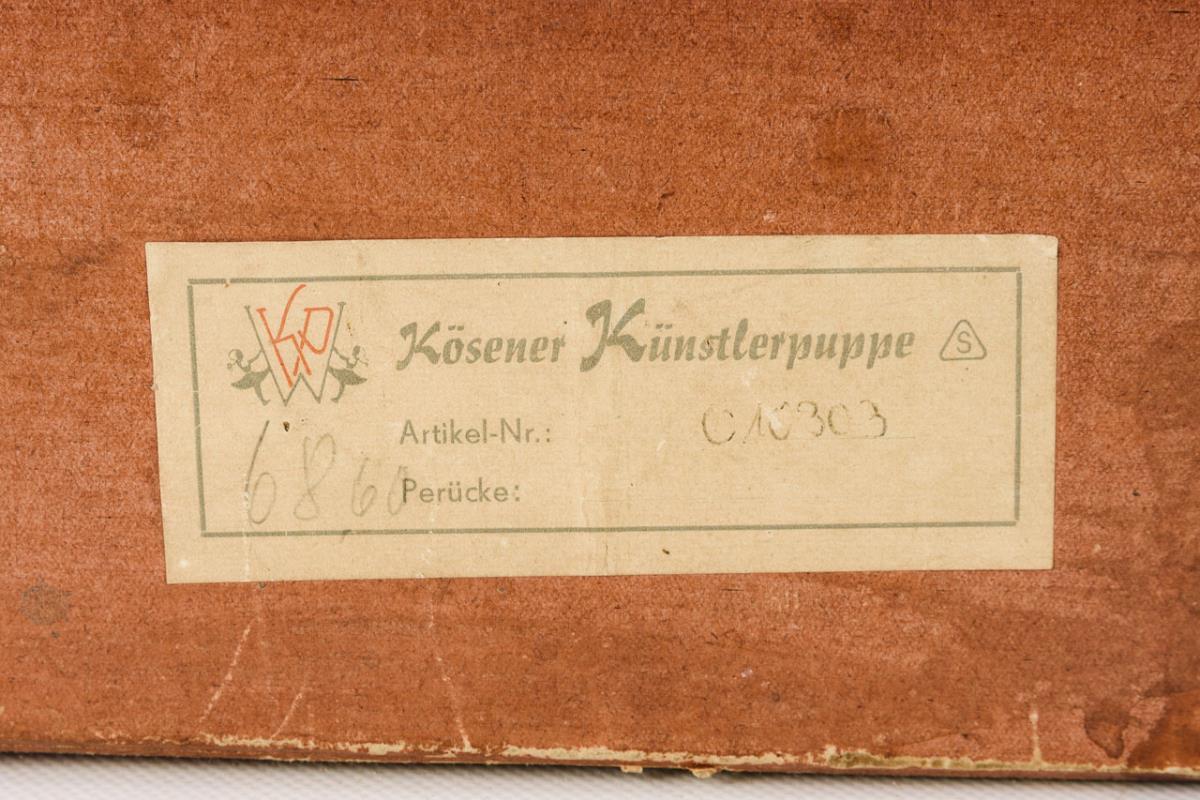 Käthe-Kruse-Mädchenpuppe in Original-Karton. "Kösener Künstlerpuppe", VEB Bad Kösen.