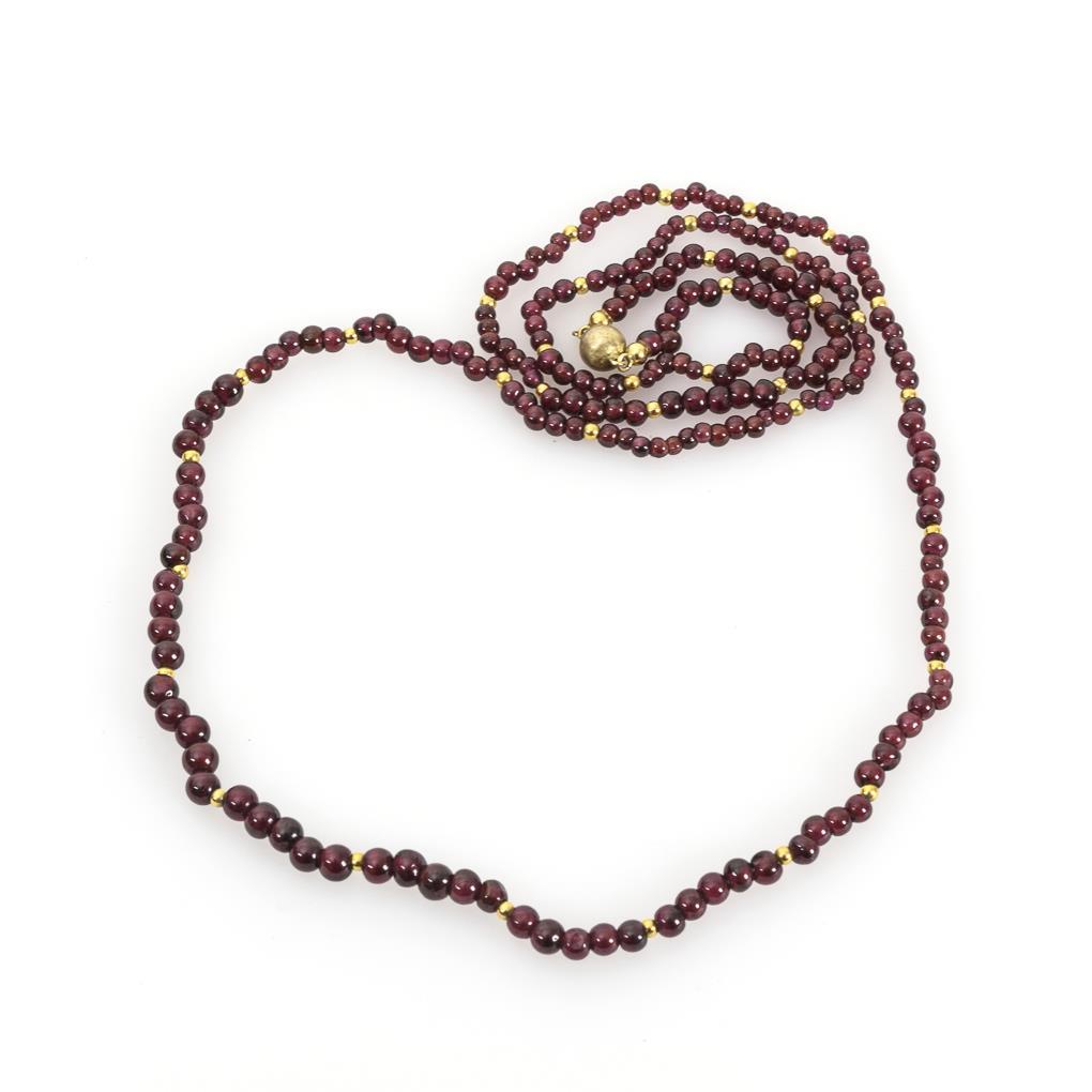 Schnürkette mit Granat- und kleinen Metallkugeln, an Kugelschließe.