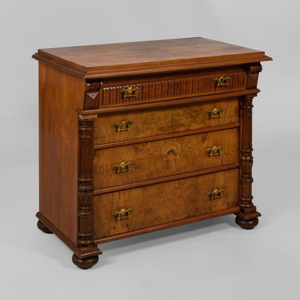 Blenderschrank in Form einer 4-schübigen Kommode, mit kanneliertem Kopfschub und Messingbeschlägen. Furnier mit kleineren Gebrauchsspuren.