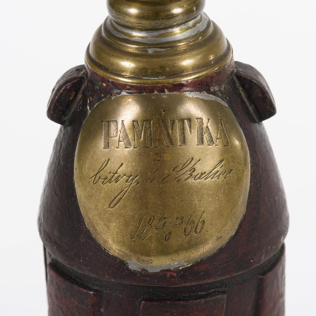 Geschosskörper als Basis für den Kerzenleuchter. Geringe Lötspuren.