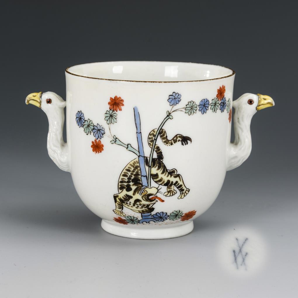 Seltener Becher mit Greifenhenkeln. Meissen.
