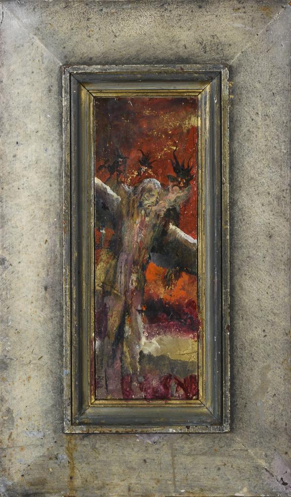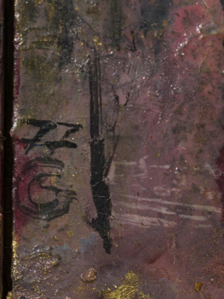Öl/Malkarton. Links unten monogrammiert, verso signiert/betitelt. Datiert: (19)77.