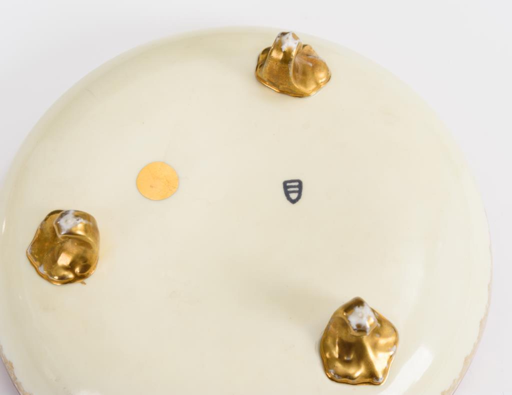 Polychrome Malerei, Goldstaffage.Ø Schale 19 cm, H Becher 15,5 cm.