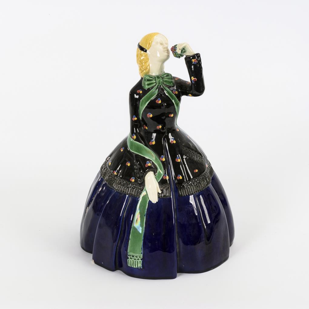Biedermeier-Dame mit Blumenstrauß. Gmundner Keramik.