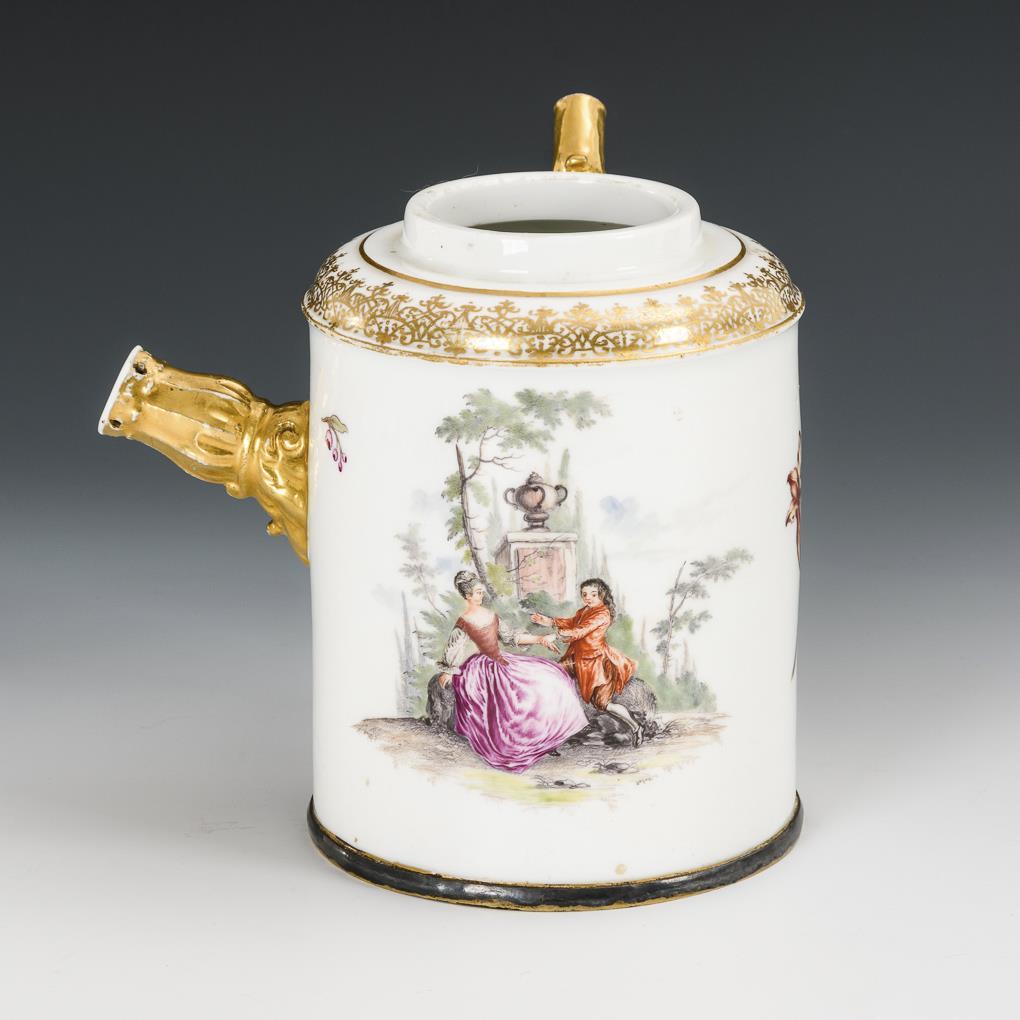 Schokoladenkanne mit Watteaumalerei. Meissen.