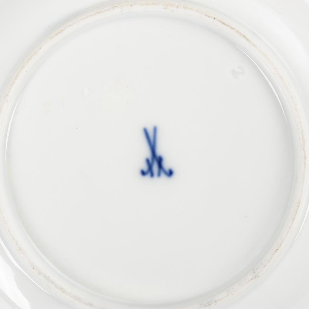 Kobaltblaue Bordüre, polychrome Blumenmalerei, Goldstaffage. Ø 16 cm.