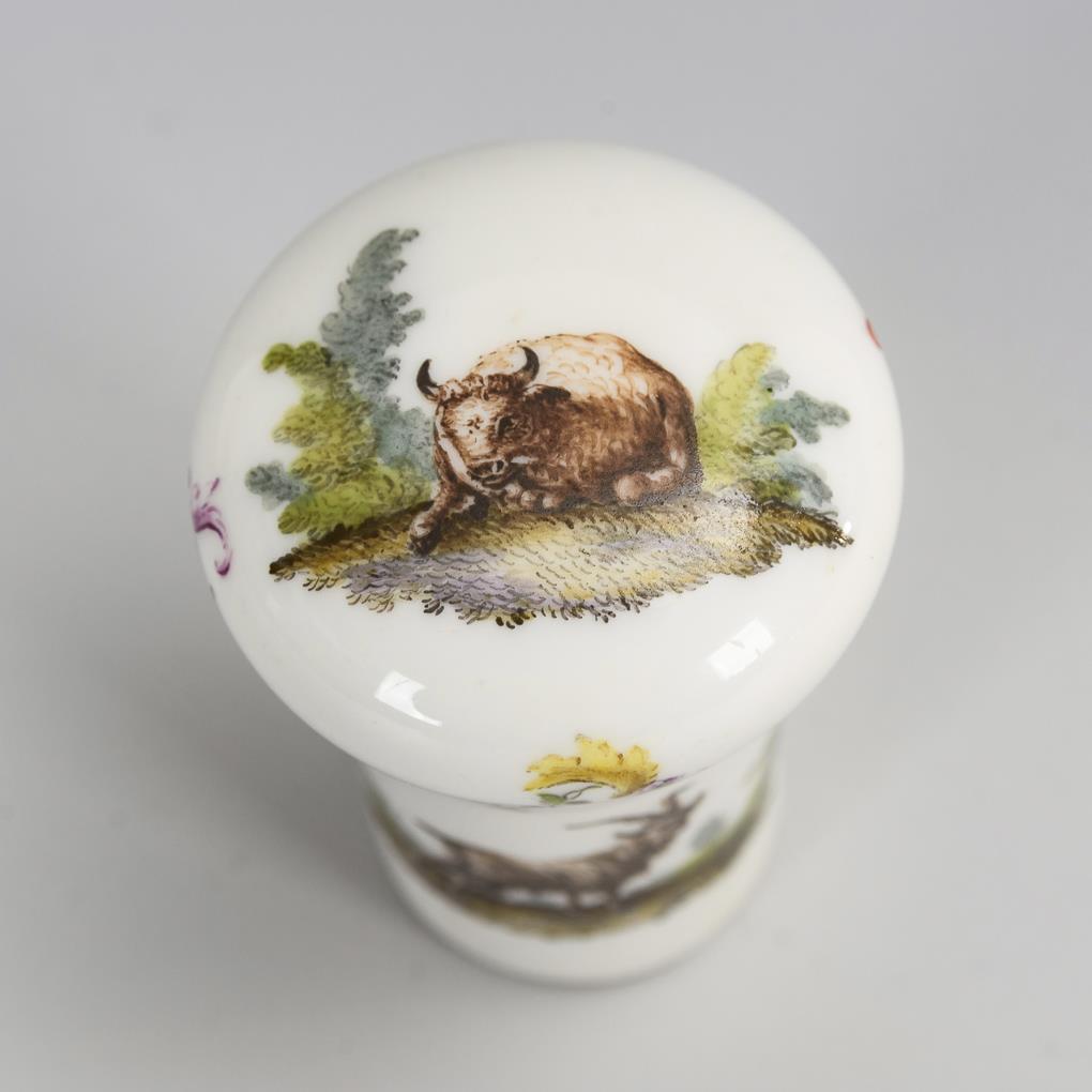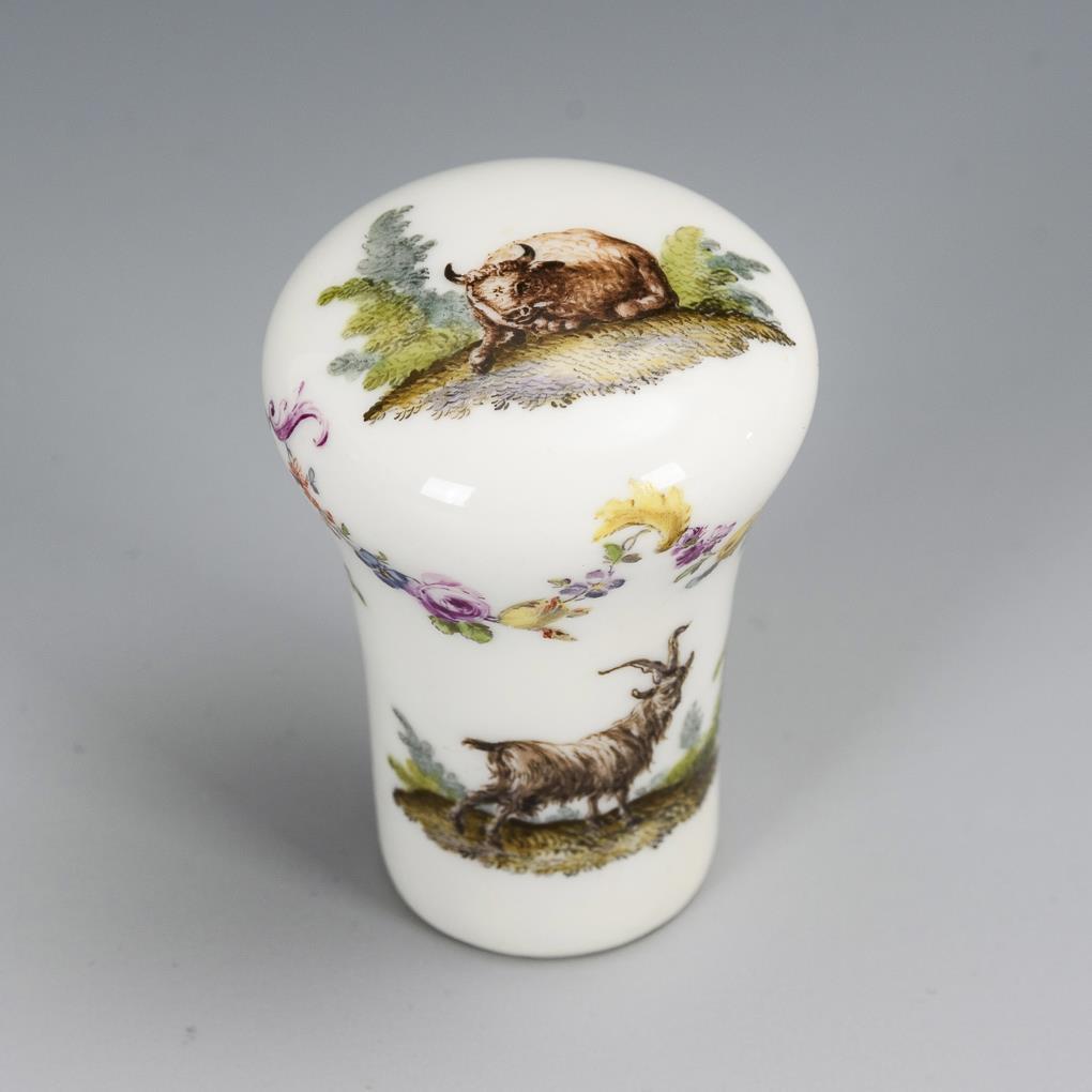 Stockknauf mit Tiermalerei. Meissen.