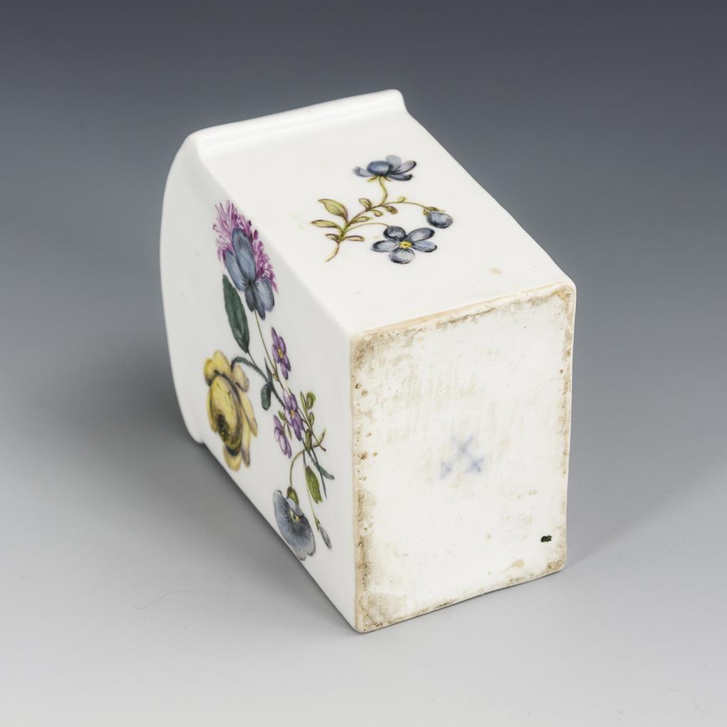 Rechteckige Dose mit allseitig gemalten Blumen und Blumenbuketts. Ohne Deckel.