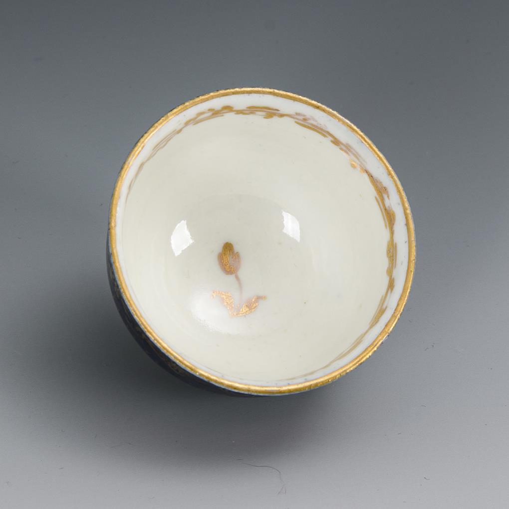 Kobaltblauer Fond, ornamental-florale Goldstaffage. H 4 cm.