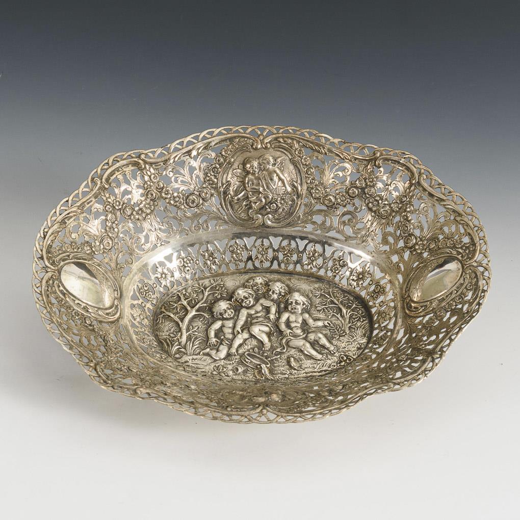 Durchbrochen gearbeitete Schale mit Puttenzier und Blütengirlanden.