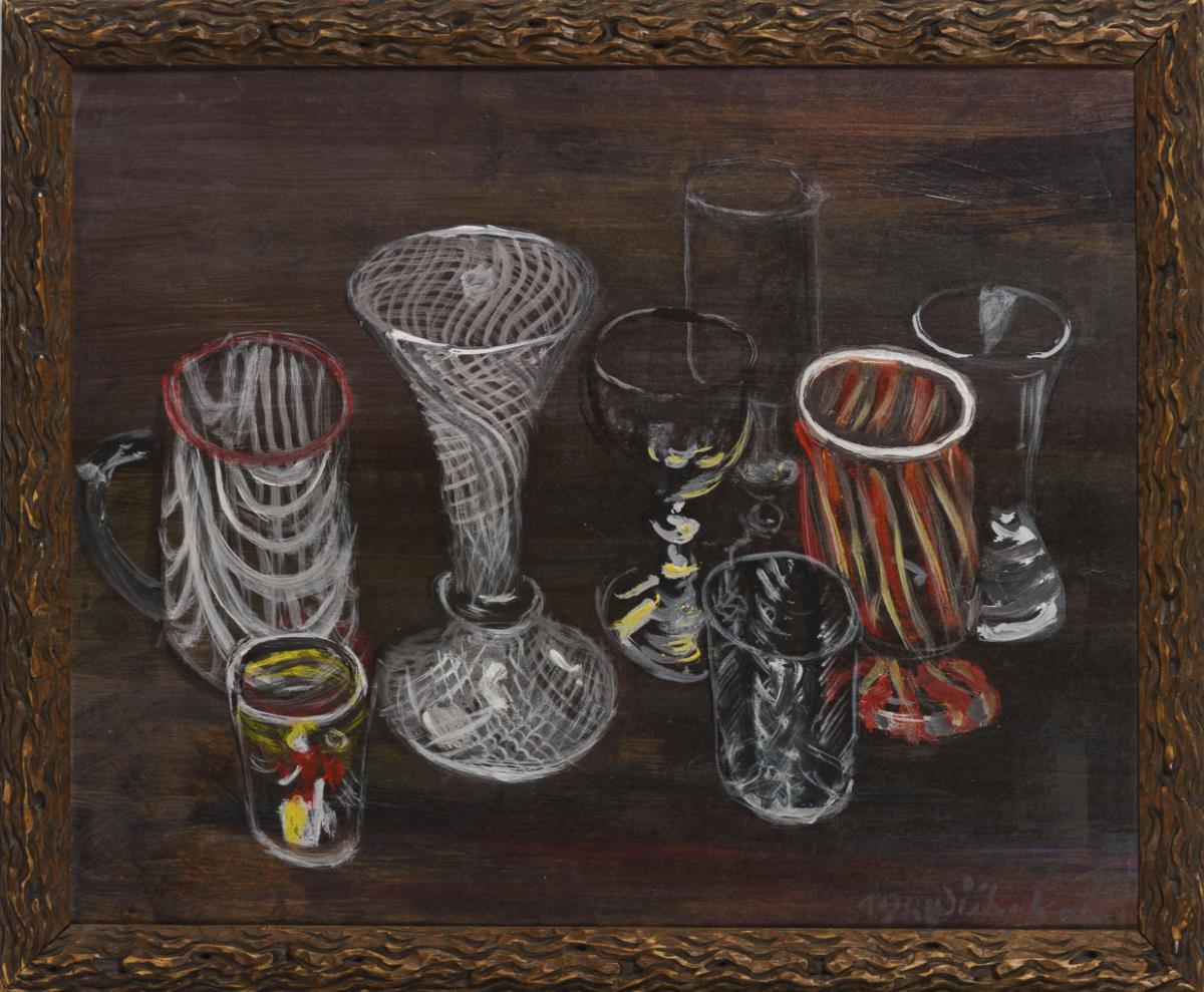 Stillleben mit verschiedenen Lauschaer Gläsern.