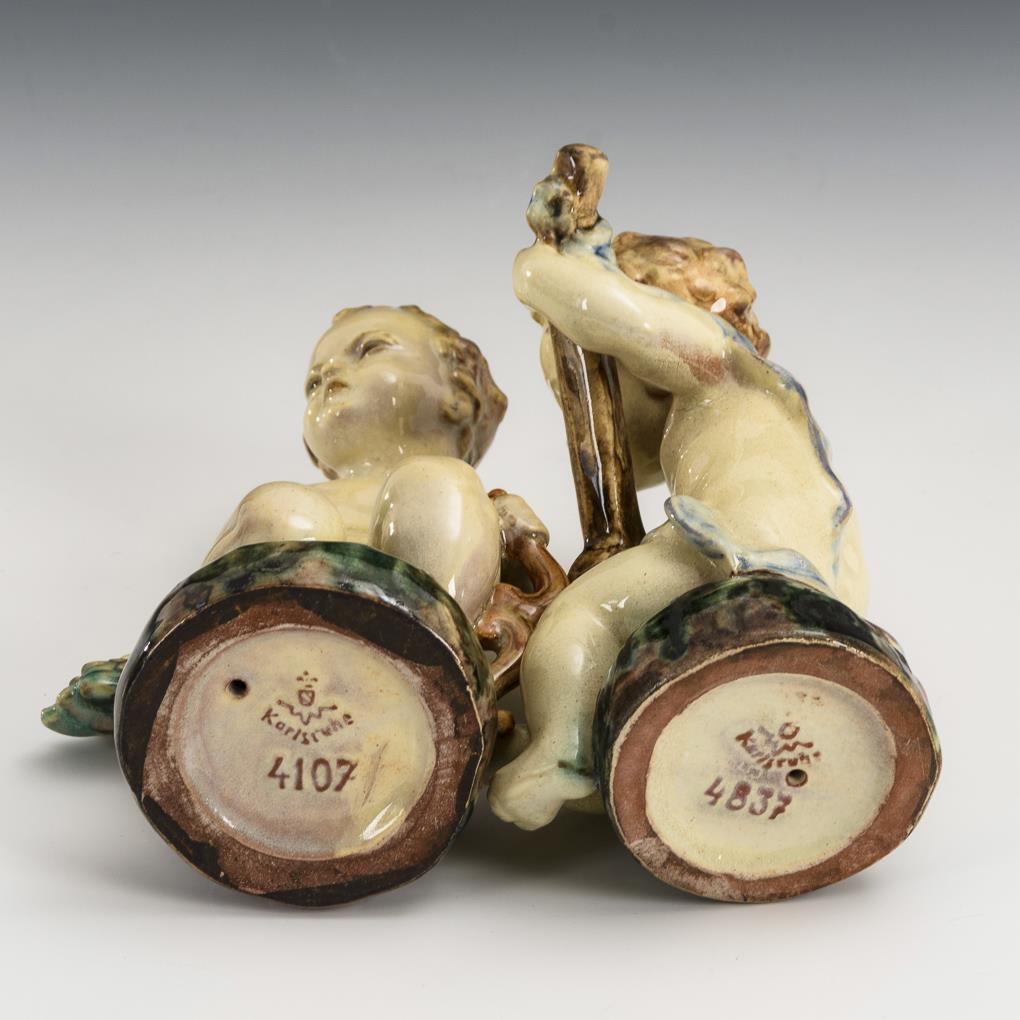 2 kleine Puttenfiguren. Karlsruher Majolika.