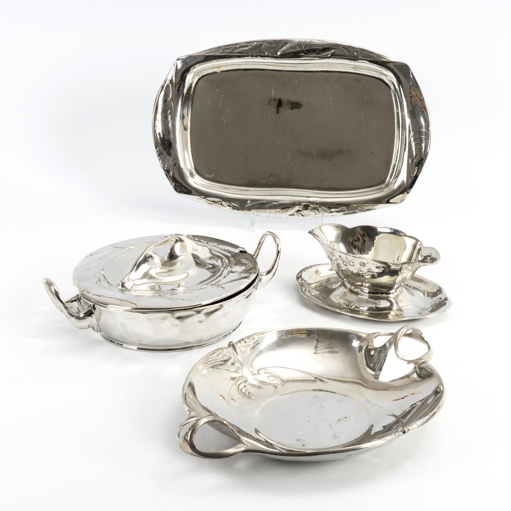 4 Teile Jugendstil-Silberzinn