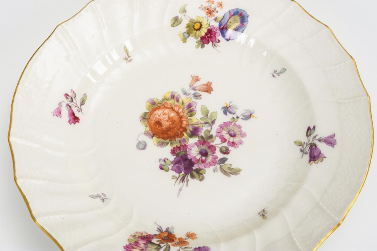 Modell "Neuozier". Frühstücksteller mit einem Blumenbukett im Spiegel sowie auf der Fahne.