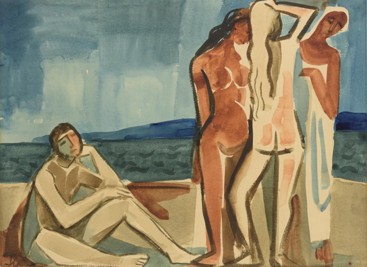 Aquarell. Links unten monogrammiert.