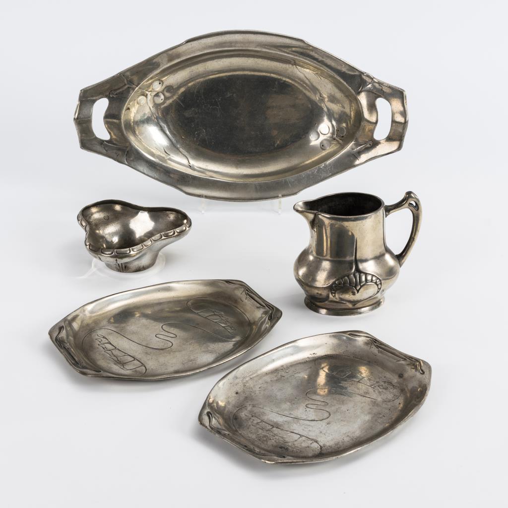5x Jugendstil-Zinn, dabei 3x Kayserzinn