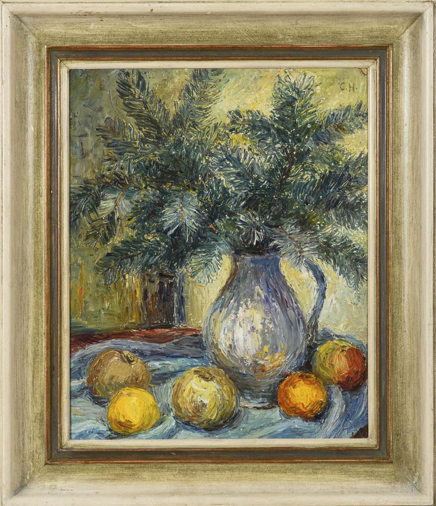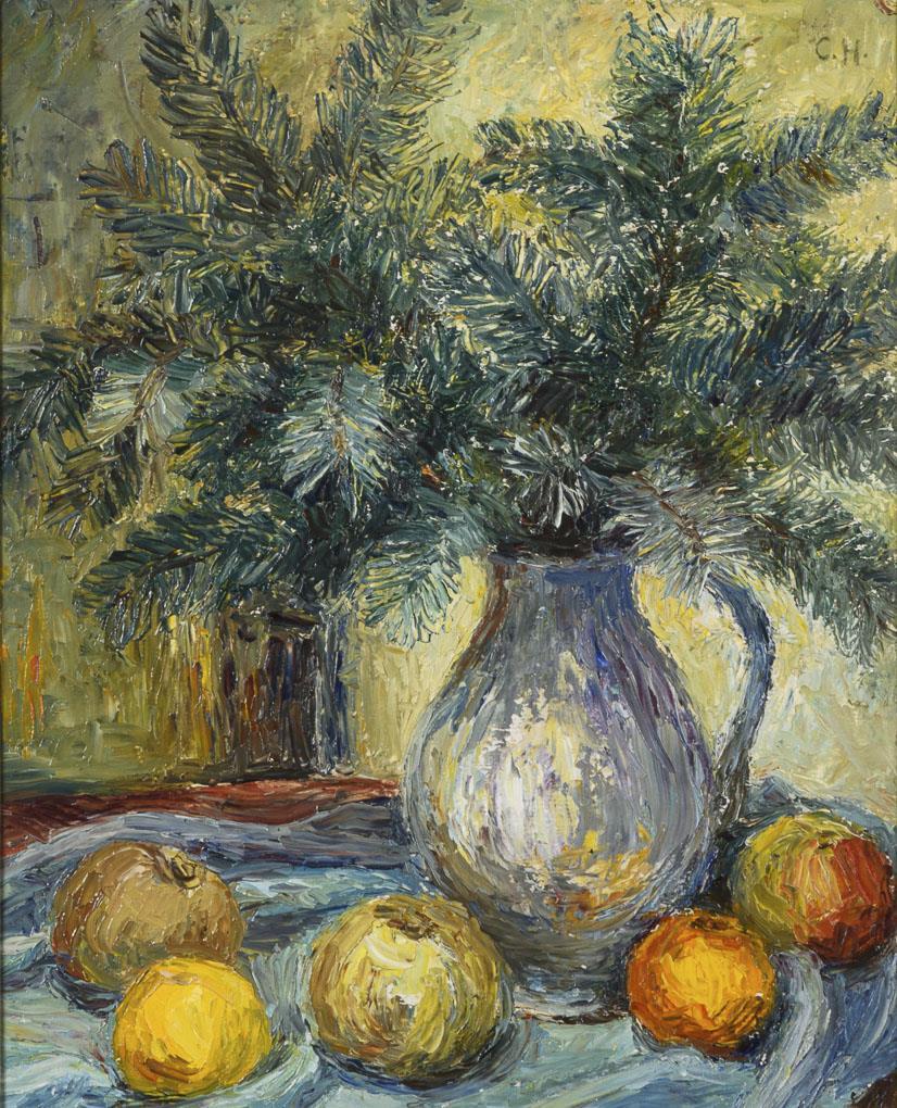 Monogrammist "C.H.": Stillleben mit Äpfeln und Tannenzweigen