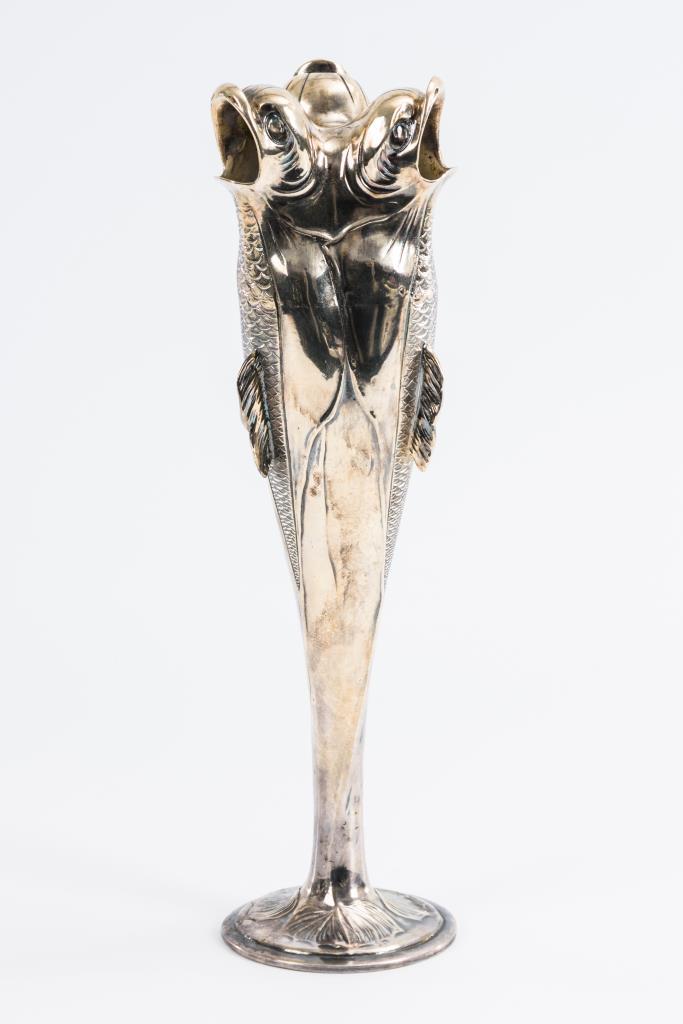 Außergewöhnliche Jugendstil-Zinnvase aus 3 Fischen