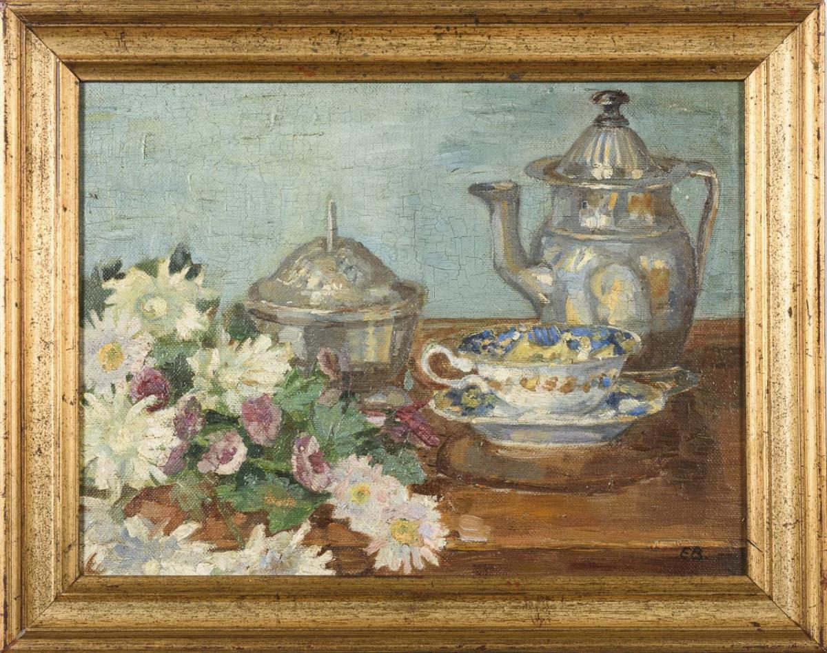 Monogrammist "E.B.": Blumengeschmückter Teetisch