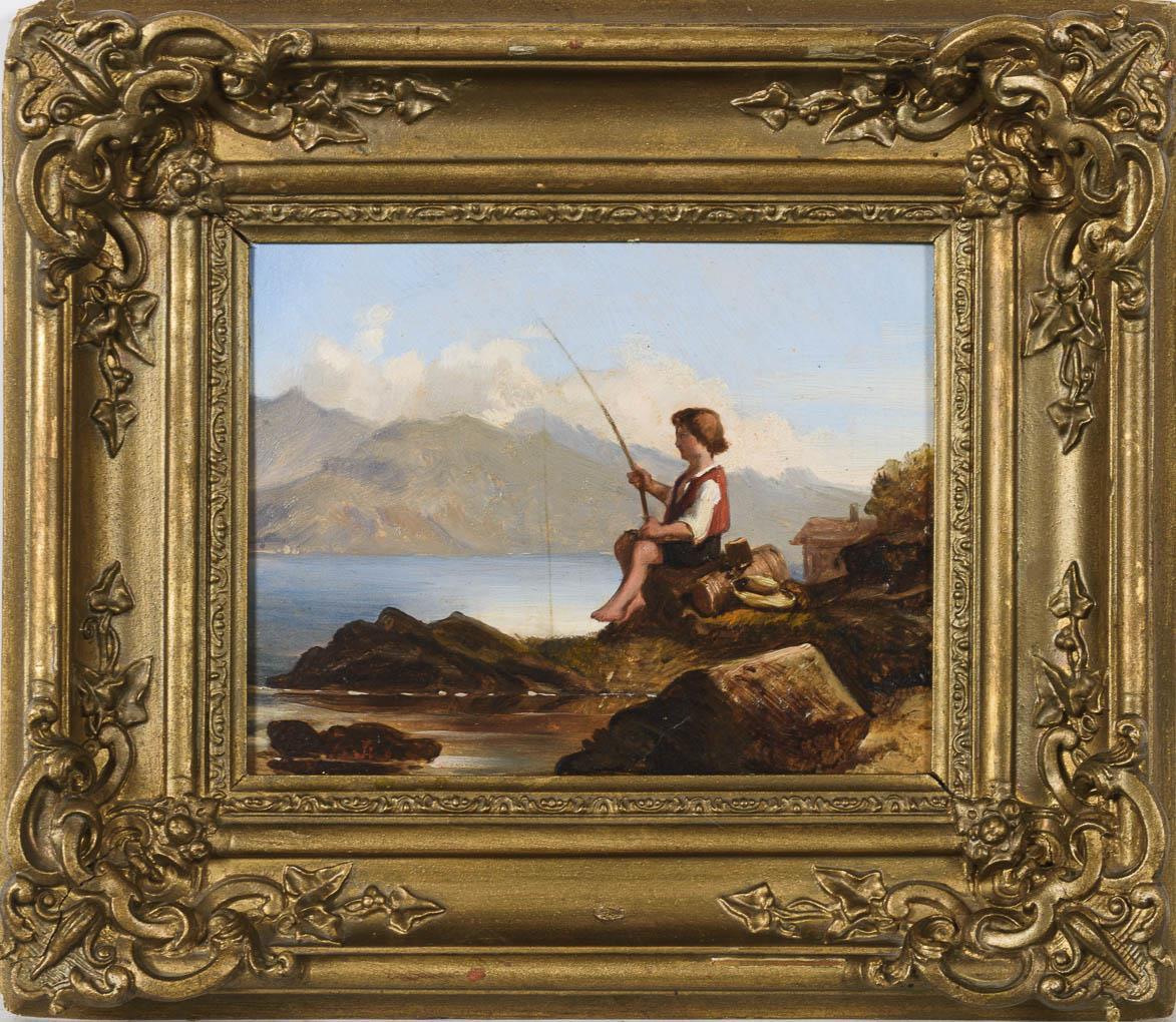 Biedermeier-Maler: Junger Angler am Gebirgssee