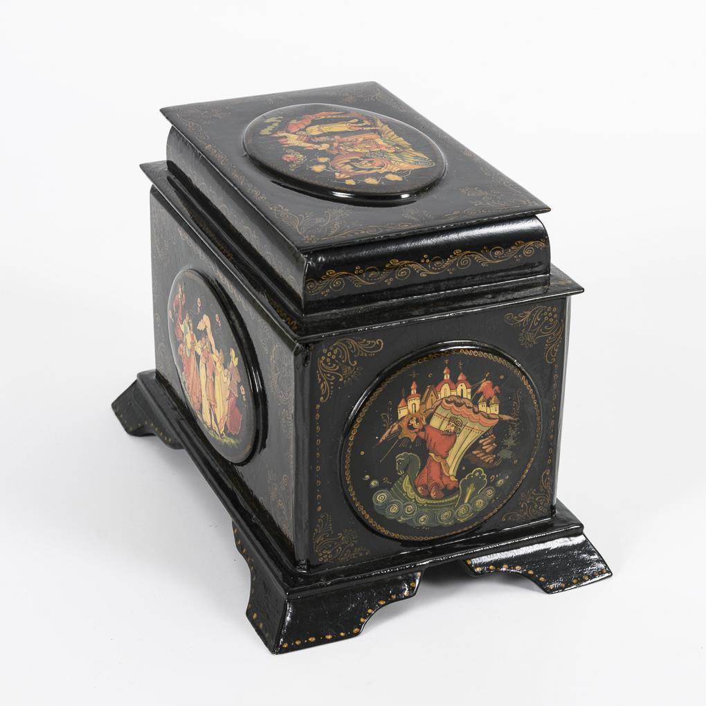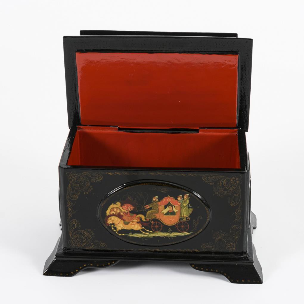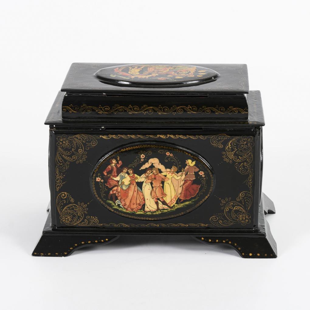 Große Lackdose mit Szenen aus dem Igorlied. Palech.