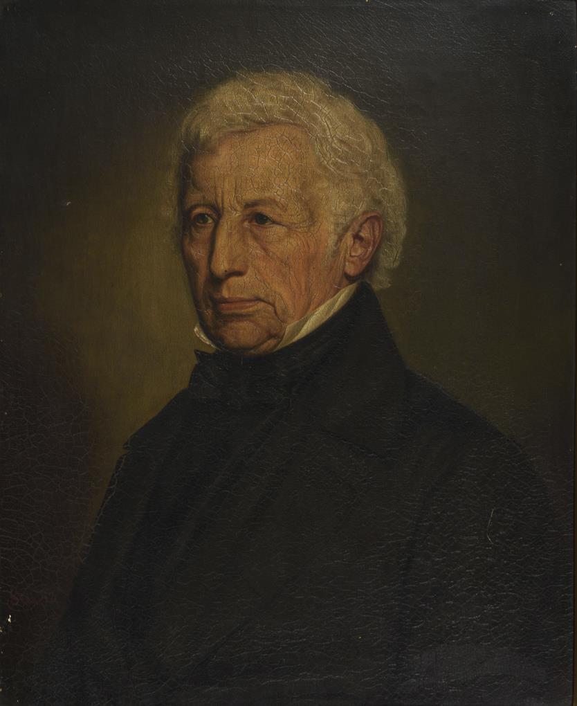 Wohl Porträts eines Ehepaares in zeittypischer schwarzer Kleidung. Altersspuren.