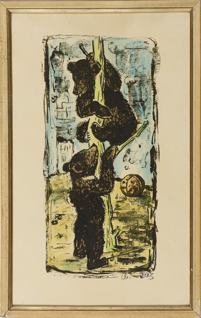 Platte: 46 x 22 cm. Gerahmt & hinter Glas: 60 x 38 cm.