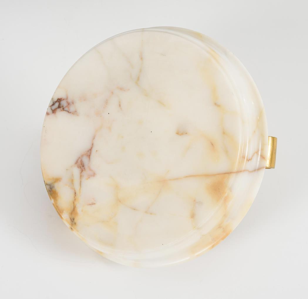 Weißer Marmor, Bronze vergoldet. H 12 cm, Ø 19 cm.
