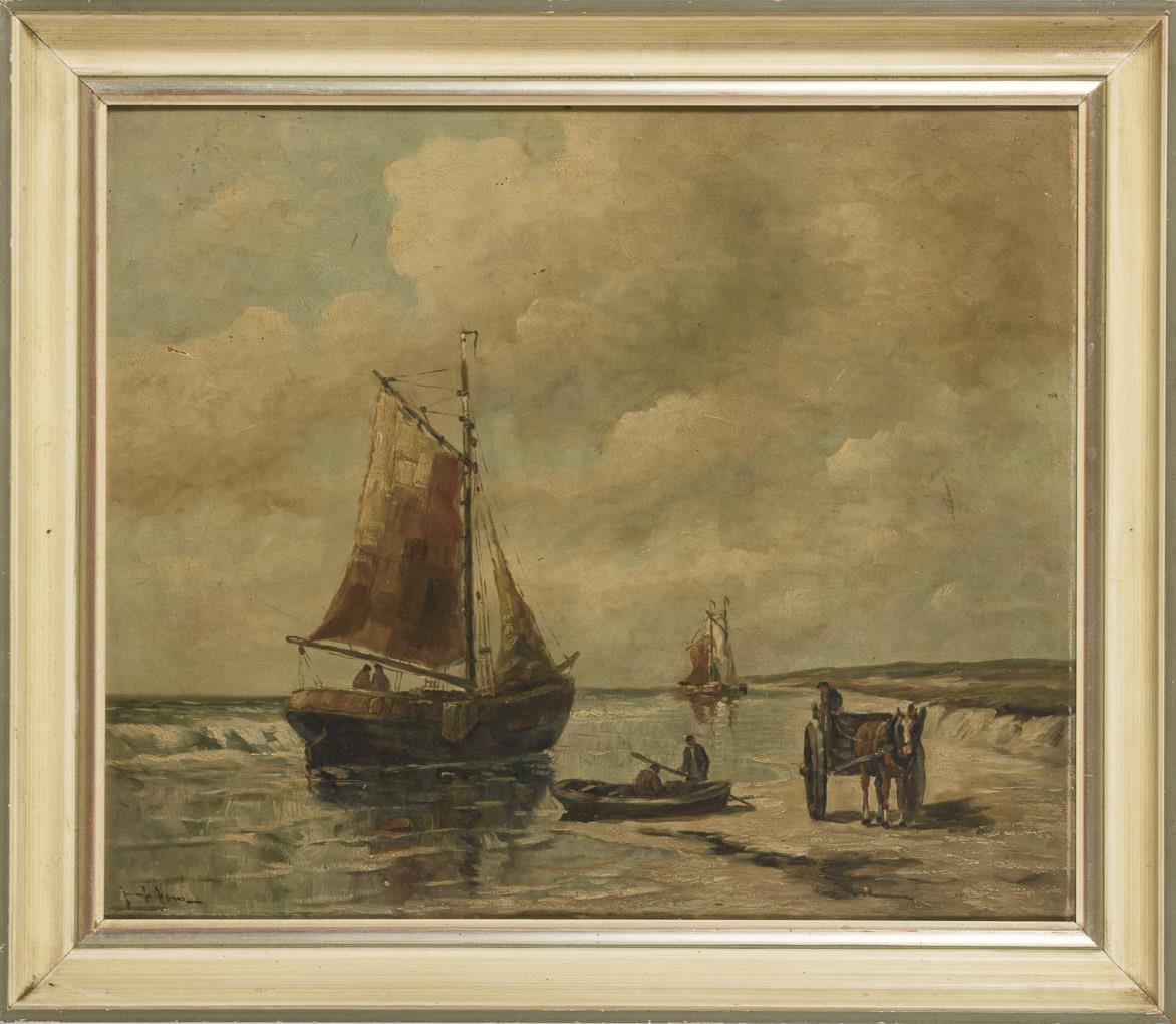 Undeutlich signiert: Fischer am Strand