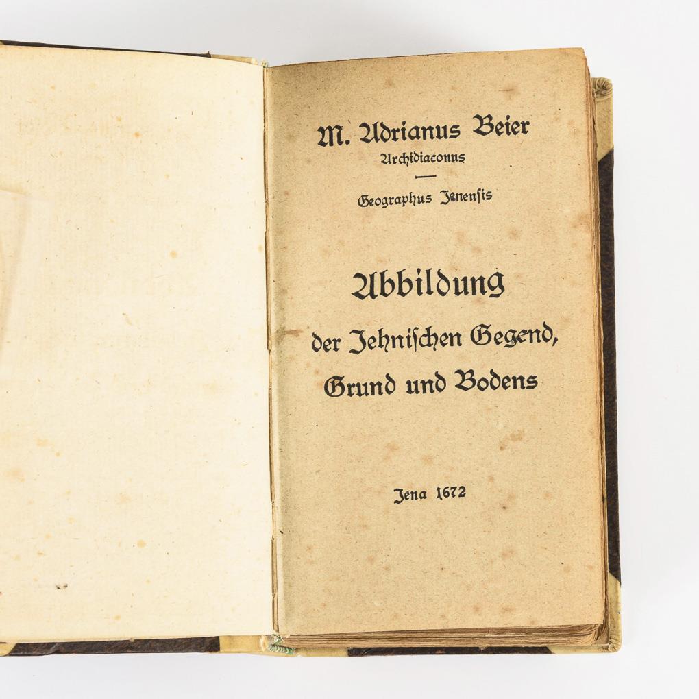 A.B.: (1600-1678), 1626 wurde er Diakon, 1635 Archidiakon an der Jenaer Stadtkirche und Dekan der Philosophischen Fakultät. 1648 wurde Beier zum 'poeta laureatus' gekrönt. Mit einem Gesamtwerk von 20 handgeschriebenen Bänden war er der bekannteste Jenaer Stadtchronist.