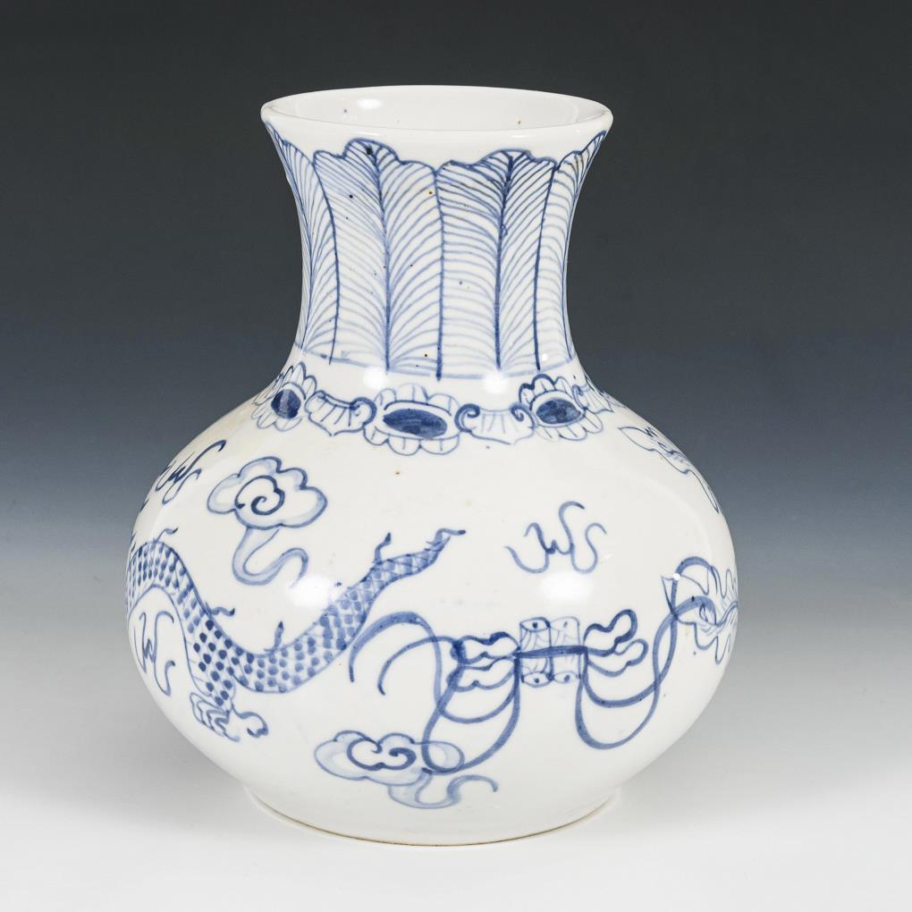 Porzellan mit Unterglasur-Blaumalerei. H 16 cm.