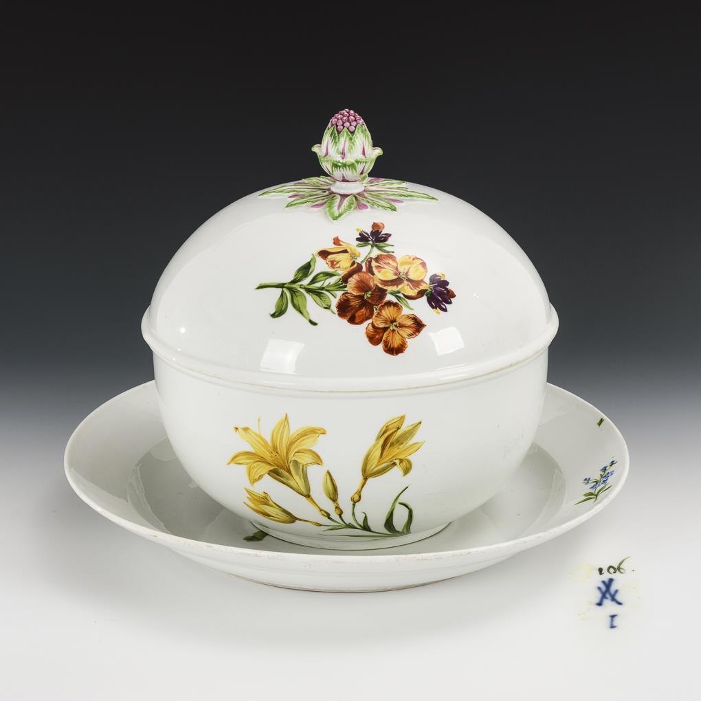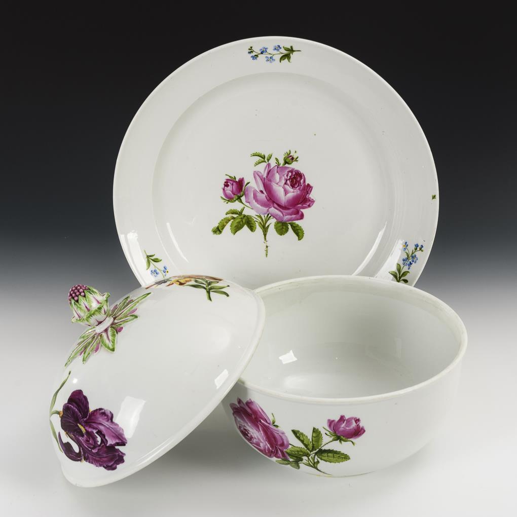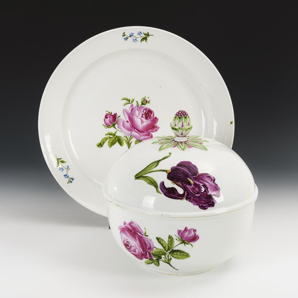 Biedermeier-Terrine und Gemüseteller. Meissen.