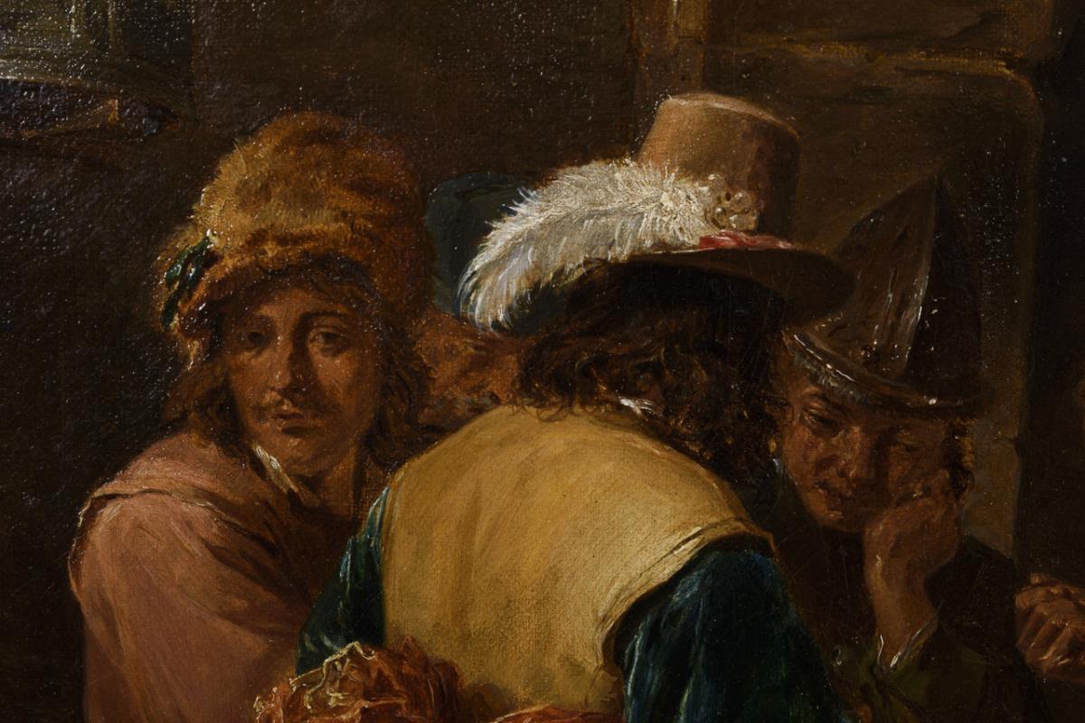 Die Männer beim Würfelspiel. Leinwand doubliert.